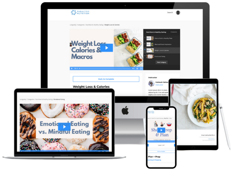 The first and only weight loss program designed specifically for people living with paralysis. It uses science-backed nutrition, macro education, and realistic meal plans that actually fit your life so you can lose weight from a wheelchair.